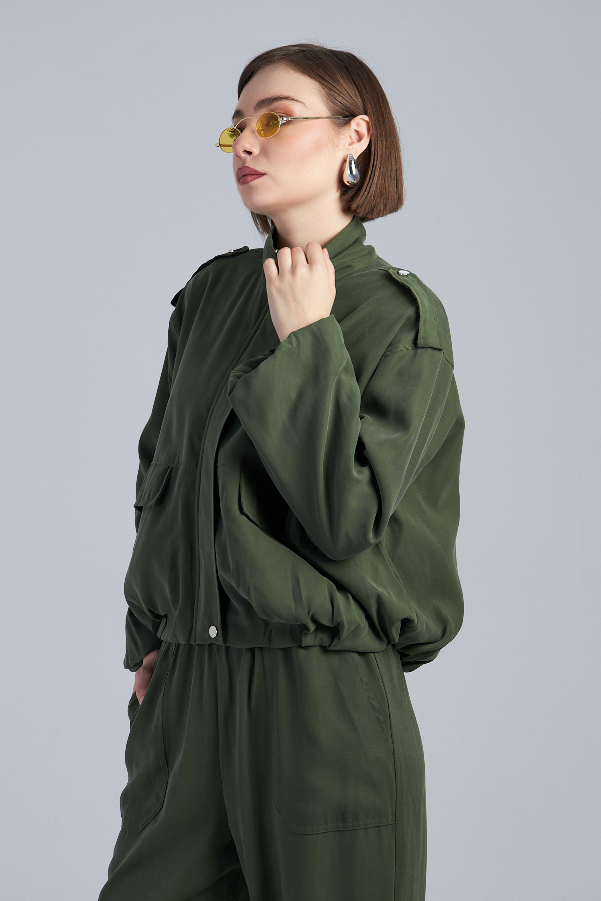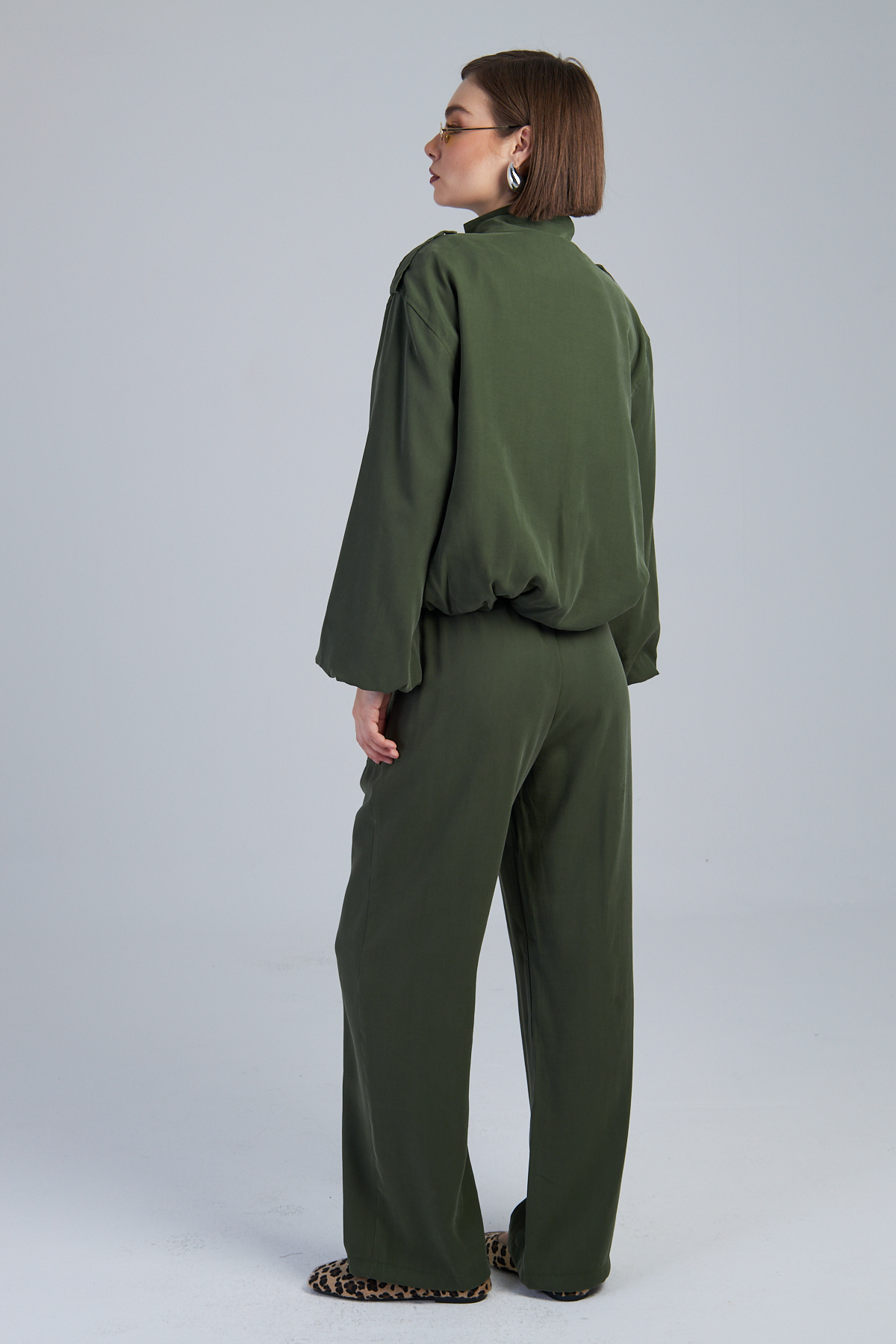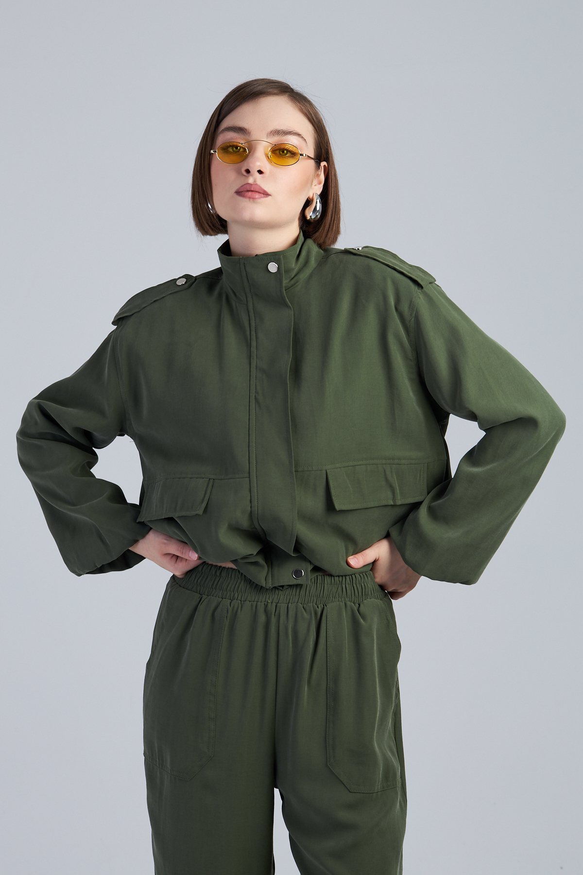 Camelya Tensel Kumaş Kargo Cepli İkili Takım – %90 viskon %10 polyester camelya tensel kumaştan üretilmiştir. Takma oversize kol ve dik yaka detayıyla modern bir görünüm sunar. Cekette 2 adet kargo cebi, pantolonda 2 adet cepli tasarım ve ceketten bambır detayıyla şıklığı tamamlar. Oversize kalıptır.