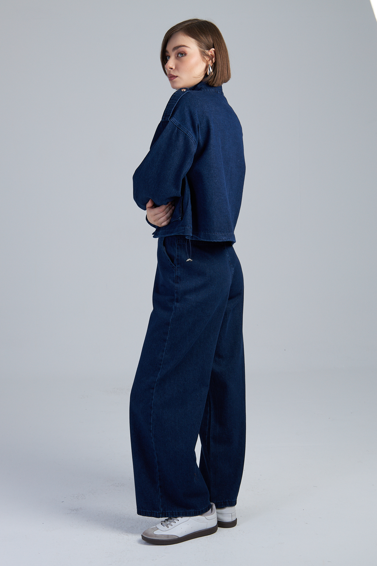 12 Onz Denim Kargo Cepli İkili Takım – %100 pamuk 12 onz denim kumaştan üretilmiştir. Oversize kol ve dik yaka detayıyla modern bir görünüm sunar. 4 cepli ve kargo cep detaylı tasarımıyla işlevselliği artırır. Denim dokuma tekniği ile üretilmiştir. Oversize kalıptır.