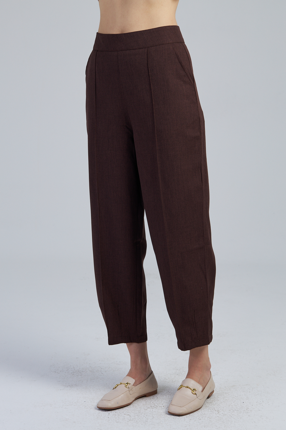 Düz Valencia Kumaş Havuç Paça Pantolon – %100 polyester düz valencia kumaştan üretilmiştir. Havuç paça kesimi ve yandan 2 adet cepli tasarımıyla modern bir görünüm sunar. Yüksek bel detayı ve geniş kalıbıyla rahat kullanım sağlar. Bezayağı dokuma tekniği ile üretilmiştir.