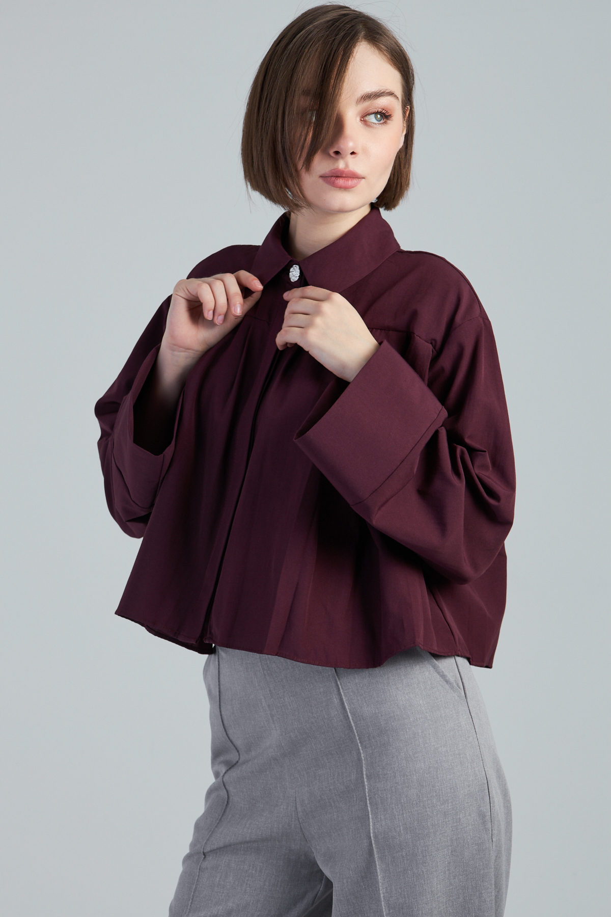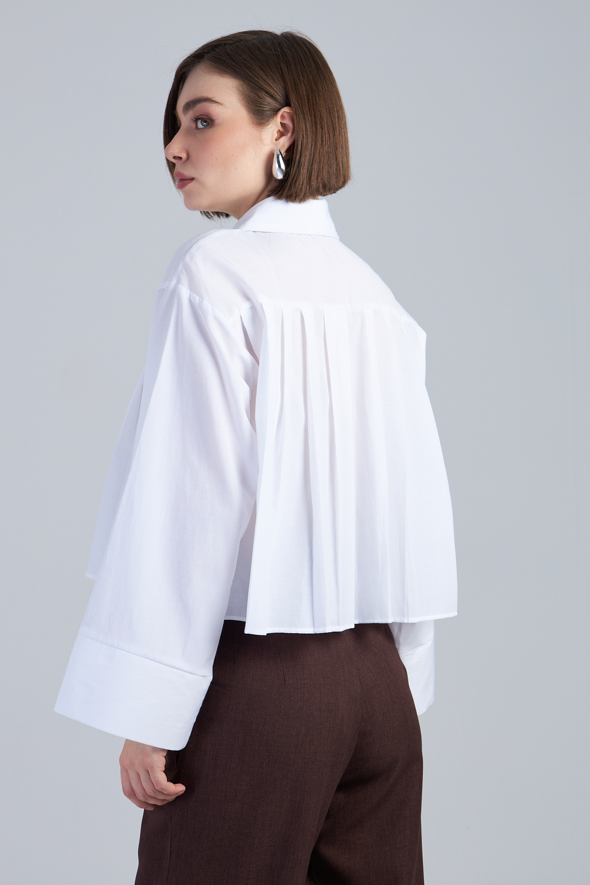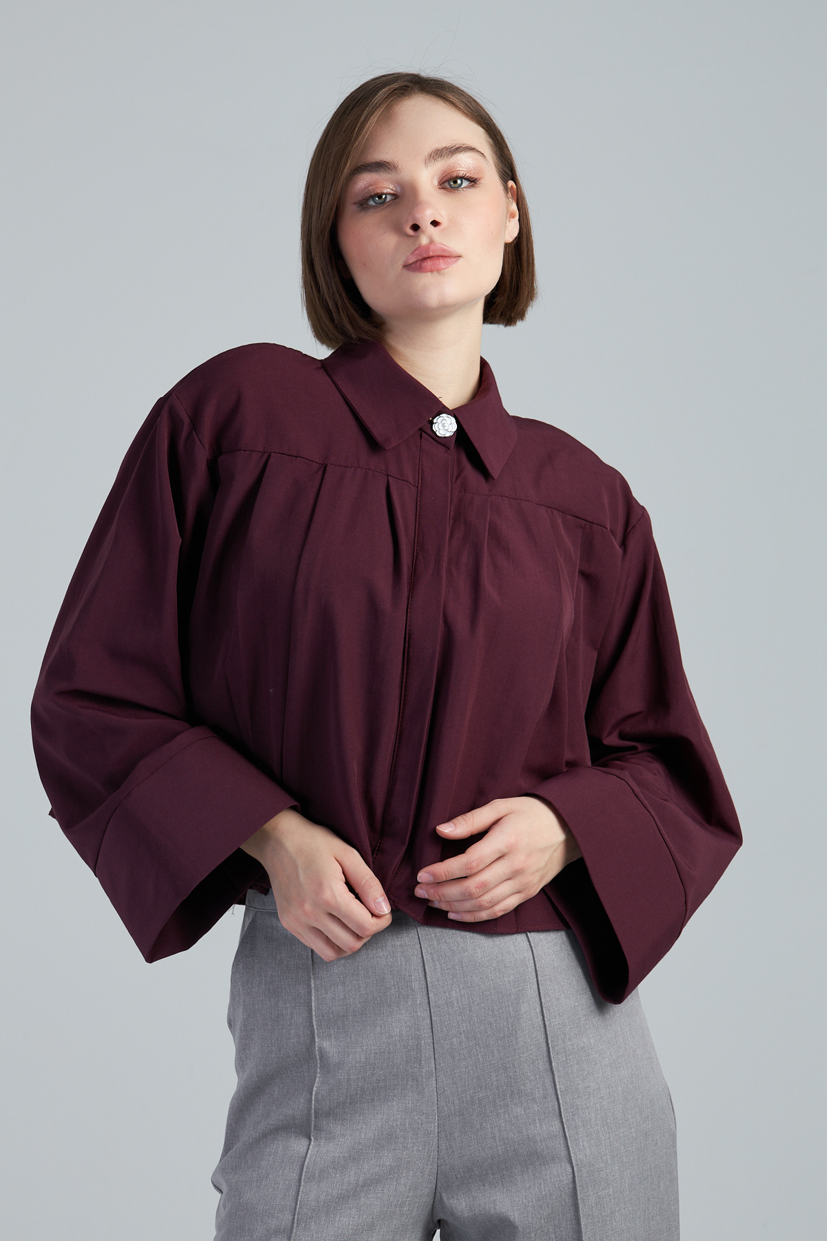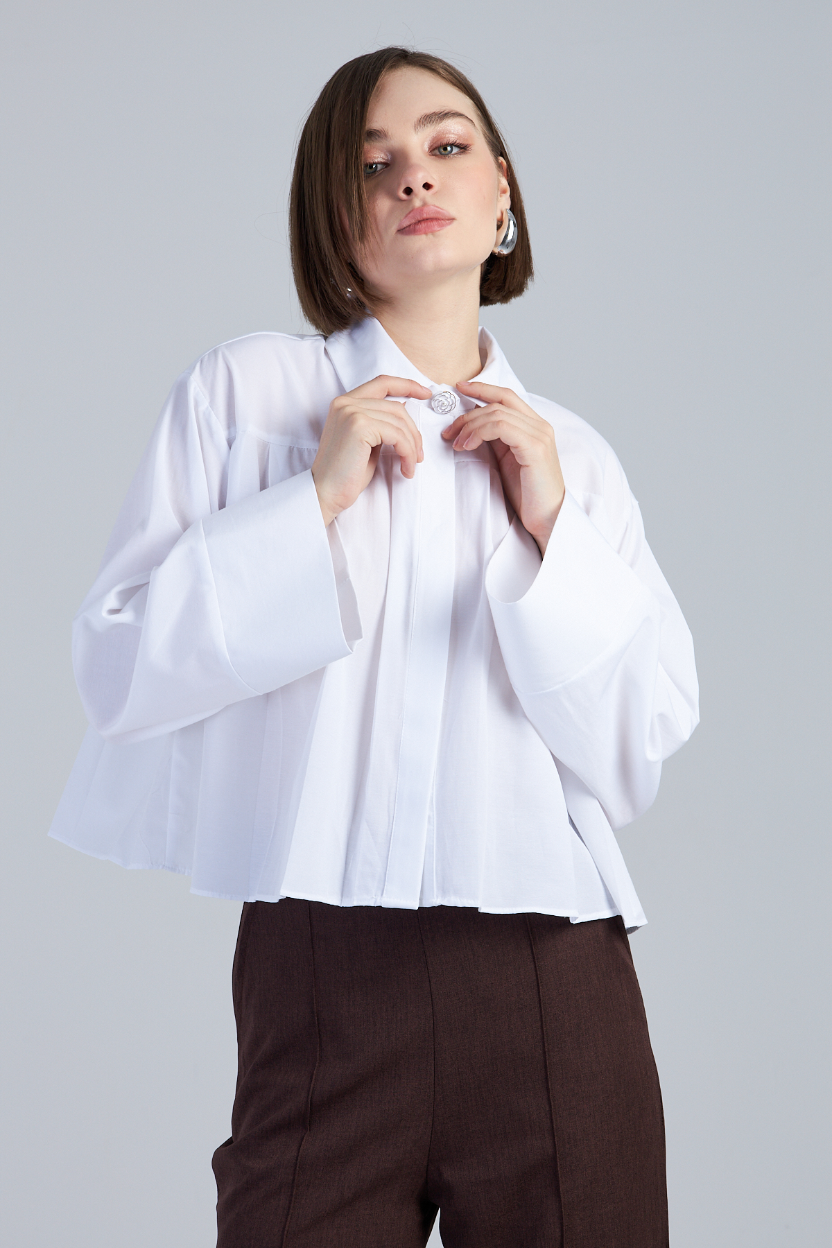 Terikoton Kumaş Pile Detaylı Kısa Gömlek – %60 pamuk %40 polyester terikoton kumaştan üretilmiştir. Oversize kol ve gömlek yaka detayıyla modern bir görünüm sunar. Pile detaylı tasarımıyla şıklığı tamamlar. Dokuma tekniği ile üretilmiştir. Oversize kalıptır.